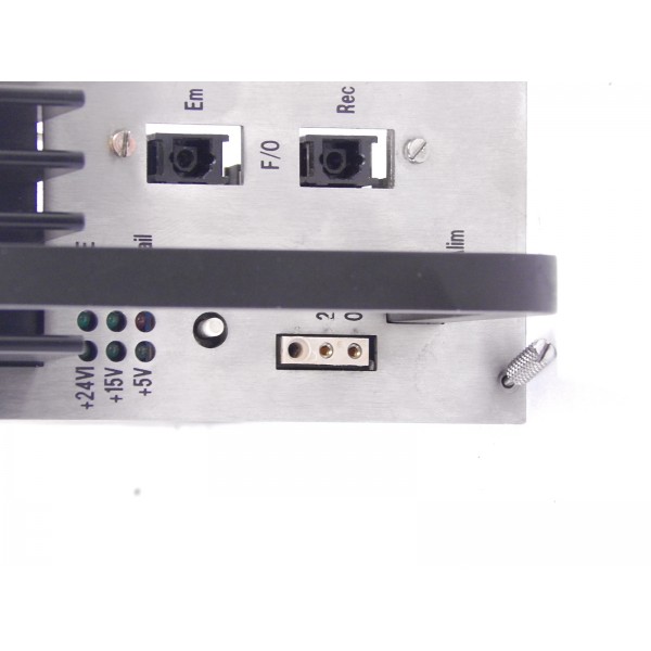 Elle est équipée d'un émetteur et d'un récepteur fibre optique pour communiquer avec des périphériques tel que les pupitres MP01, MP02 et les modules entrées sorties déportés.