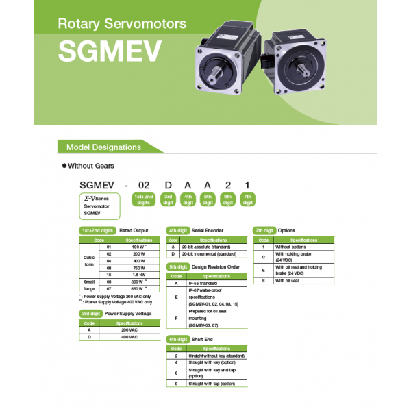 Servomoteur à inertie basse et moyenne série Sigma V (SGMEV)