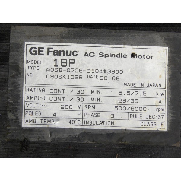 Servomoteur FANUC série 18P 200V, 28/36A, 500/8000 tr/min.