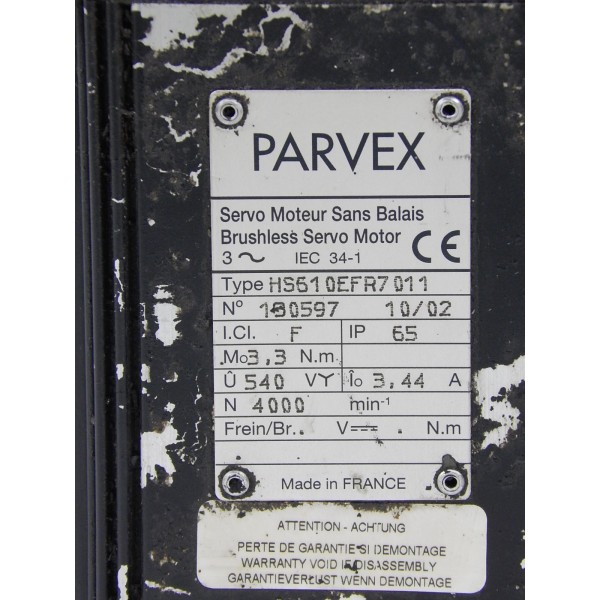 Servomoteur PARVEX 3,3Nm, 4000tr/min sans frein.