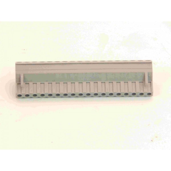 Connecteur 18 broches à vis pour les modules entrées/sorties déportées pilotés par fibre optique de la gamme 1000 des commandes numériques NUM. Référence des modules(263900014/263900016/080096/080097/080098/08009/209206170/209206171/209206172/209206173).