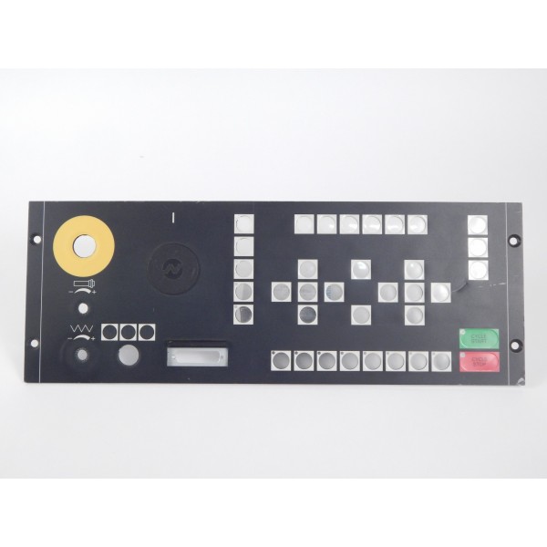 Face avant de pupitre machine MP01 nu personnalisable, elle se trouve en générale sous un pupitre avec écran Num 1060 Num 1040 Num1020, référence constructeur 207202830. Montée sur tour, aléseuse, fraiseuse, rectifieuse, centre d'usinage.